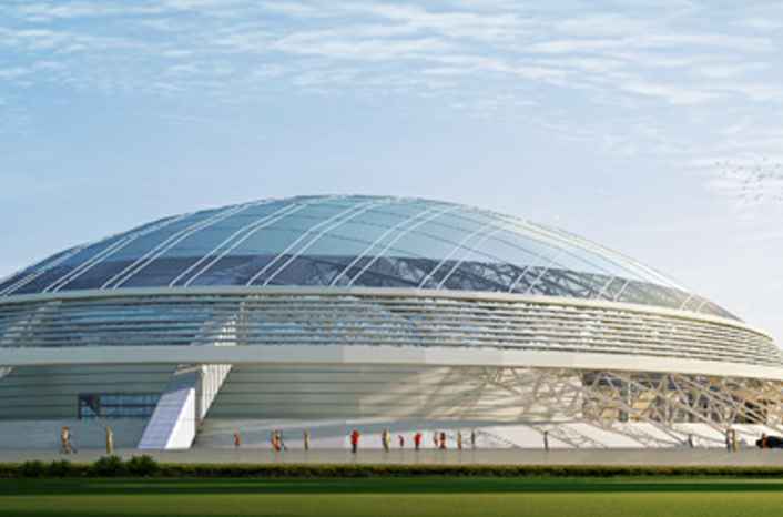 该工程伊宁体育馆建筑面积19195m2,长轴直径118.5米,短轴直径89.39米。